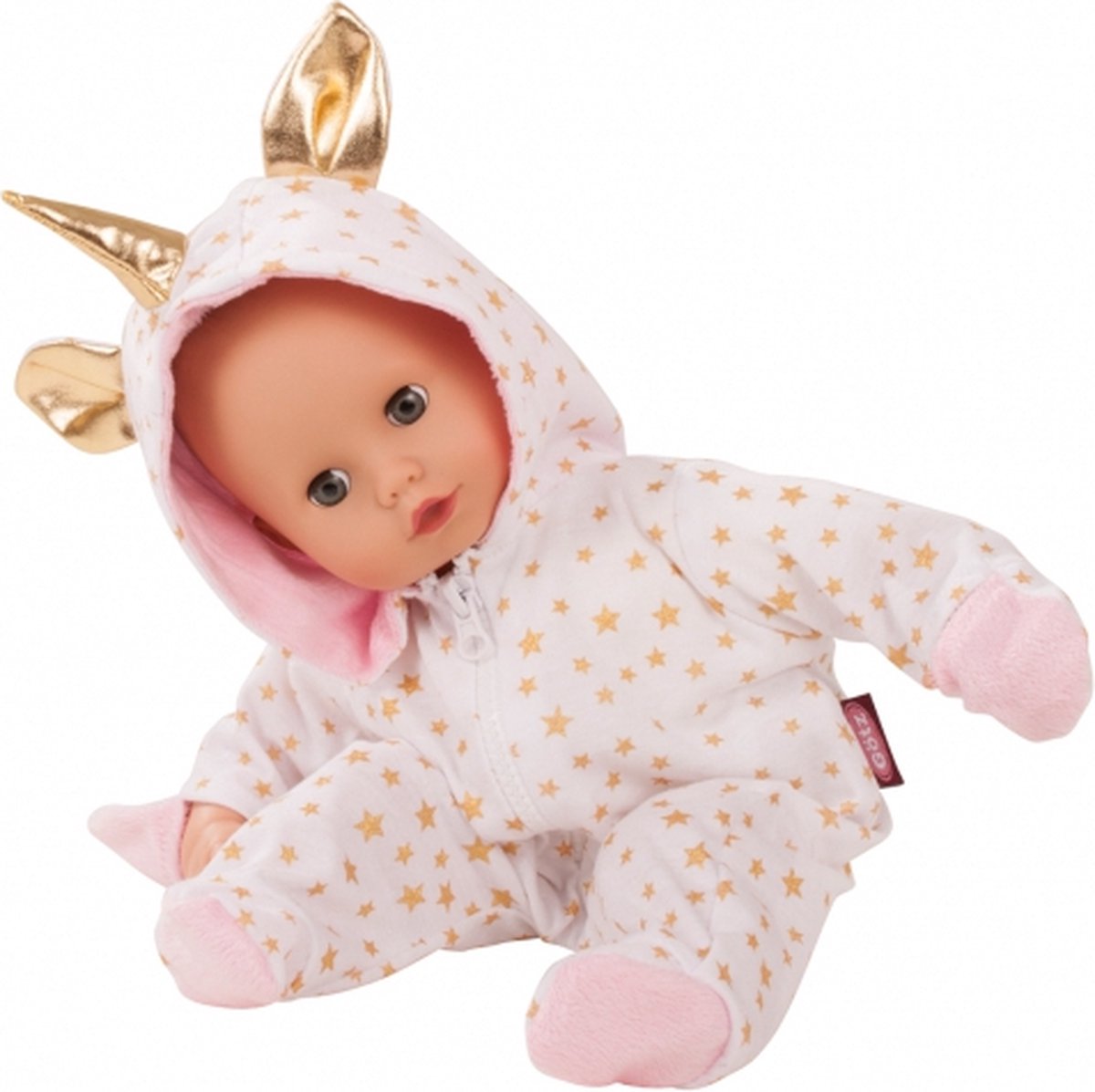 Snoezige onesie met motief eenhoorn voor jouw Götz pop van 30-33cm. Heeft je pop koude handjes, dan kan ze die opwarmen in de roze wantjes, die er aan vast zit.
